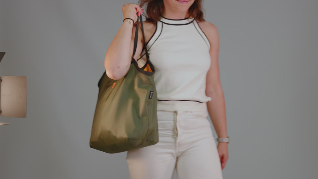 L’incontournable cabas « Est/Ouest » réversible en nylon recyclé... un style chic et urbain.